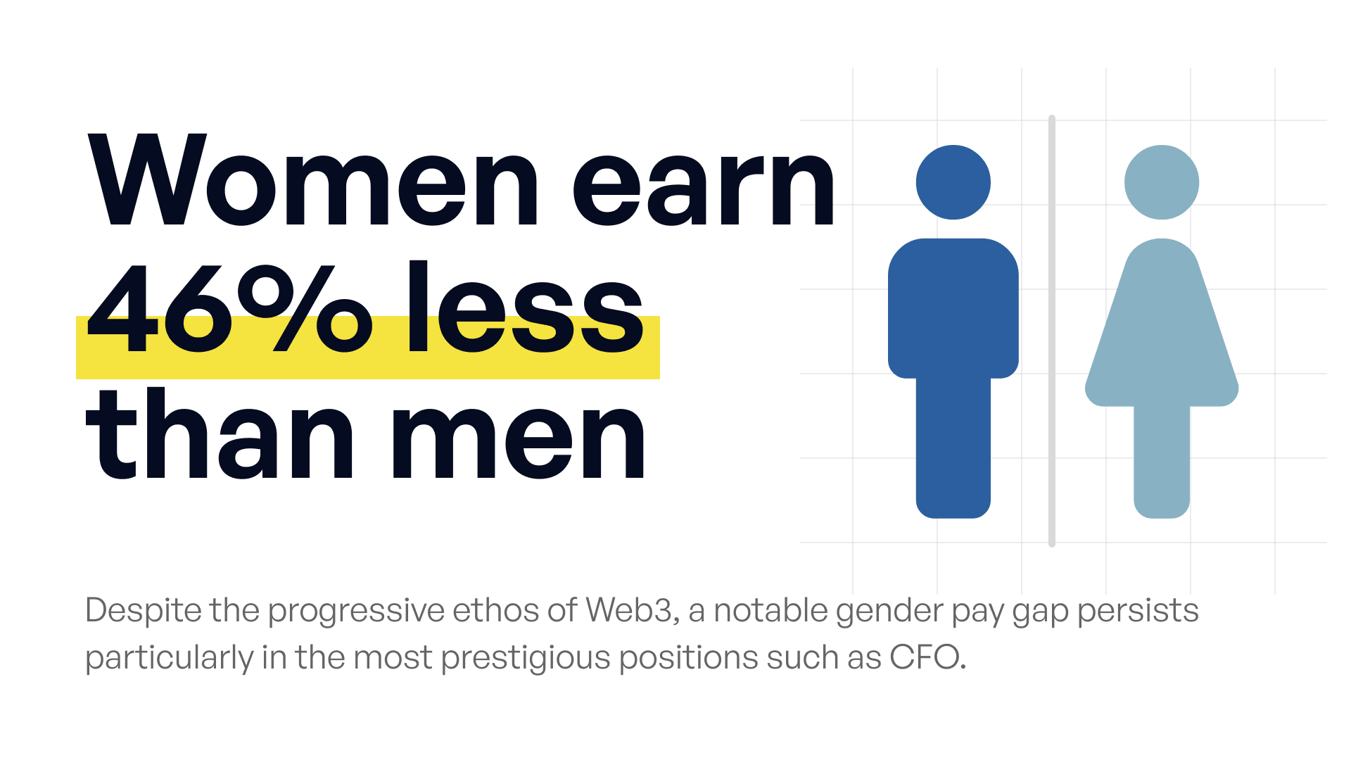 - Substantial Gender Pay Gap: Despite the progressive ethos of Web3, a notable gender pay gap persists, with women earning 46% less than men on average.